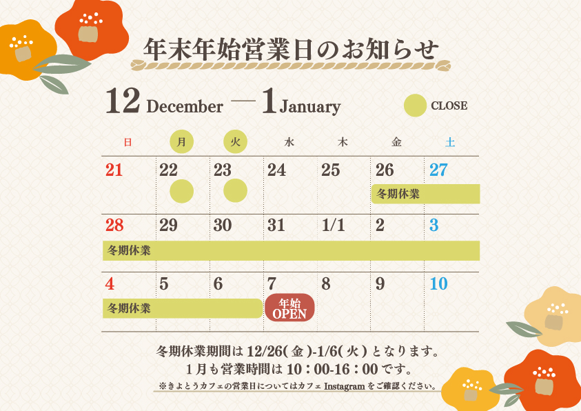 年末年始の営業日についてお知らせです。